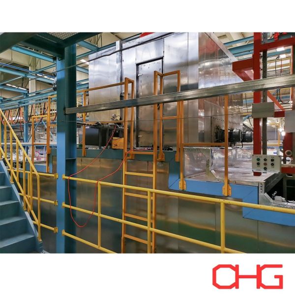 The oven plate is assembled with mechanized conforming insulation board and lined with a steel structure skeleton. On both sides of the oven, there are air outlets made of galvanized steel plate. The front and rear of the oven are equipped with roller shutter doors made of insulation material.